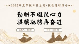 2025学校年度工作总结汇报【校长述职】:勤耕不辍聚心力,骐骥驰骋再奋进主题班会ppt课件 2026-01-03 ppt课件 45 获取完整资料请购买下载下载价格10 图币VIP免费立即购买客服qq:2389427778 0