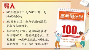 【高三】【春季下】2026年倒计时100天主题班会:百日飞驰,必成王者ppt课件 13小时前 ppt课件 11 获取完整资料请购买下载下载价格10 图币VIP免费立即购买客服qq:2389427778 0
